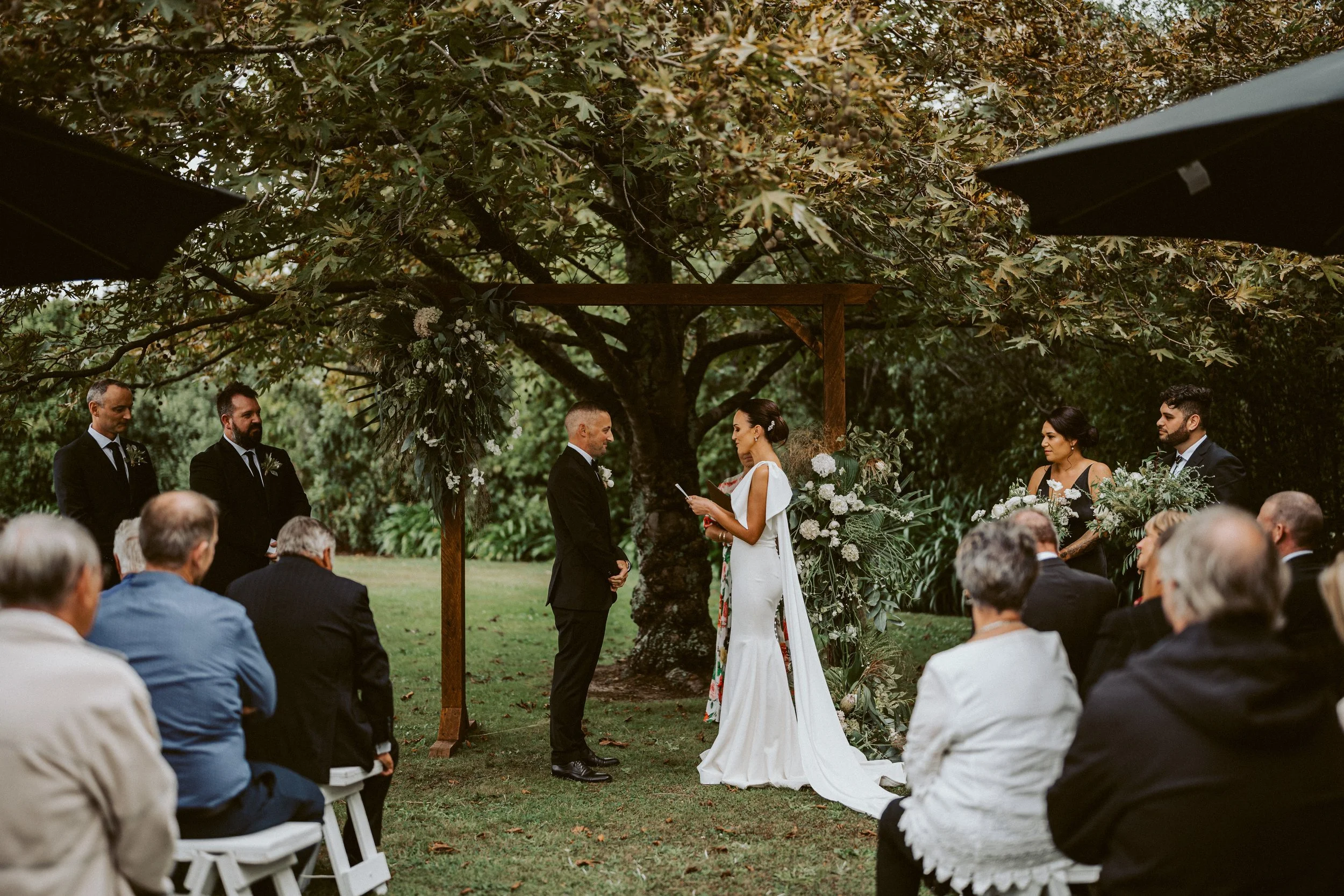 Married on the outskirts of Palmy in a beautiful Twelve Tables Black Clear marquee, these two dodged a week of rainy forecasts back in March to put on an absolute stunner of a day for their guests.